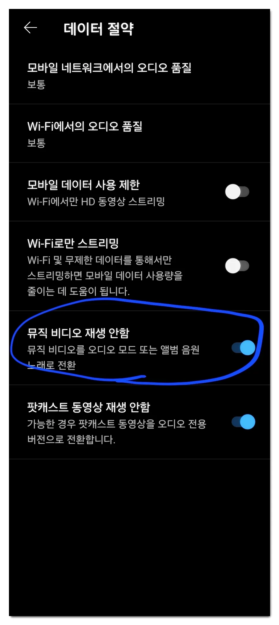 유튜브 음원 재생시 데이터를 가장 많이 잡아먹는 뮤직비디오 재생 방지를 위해