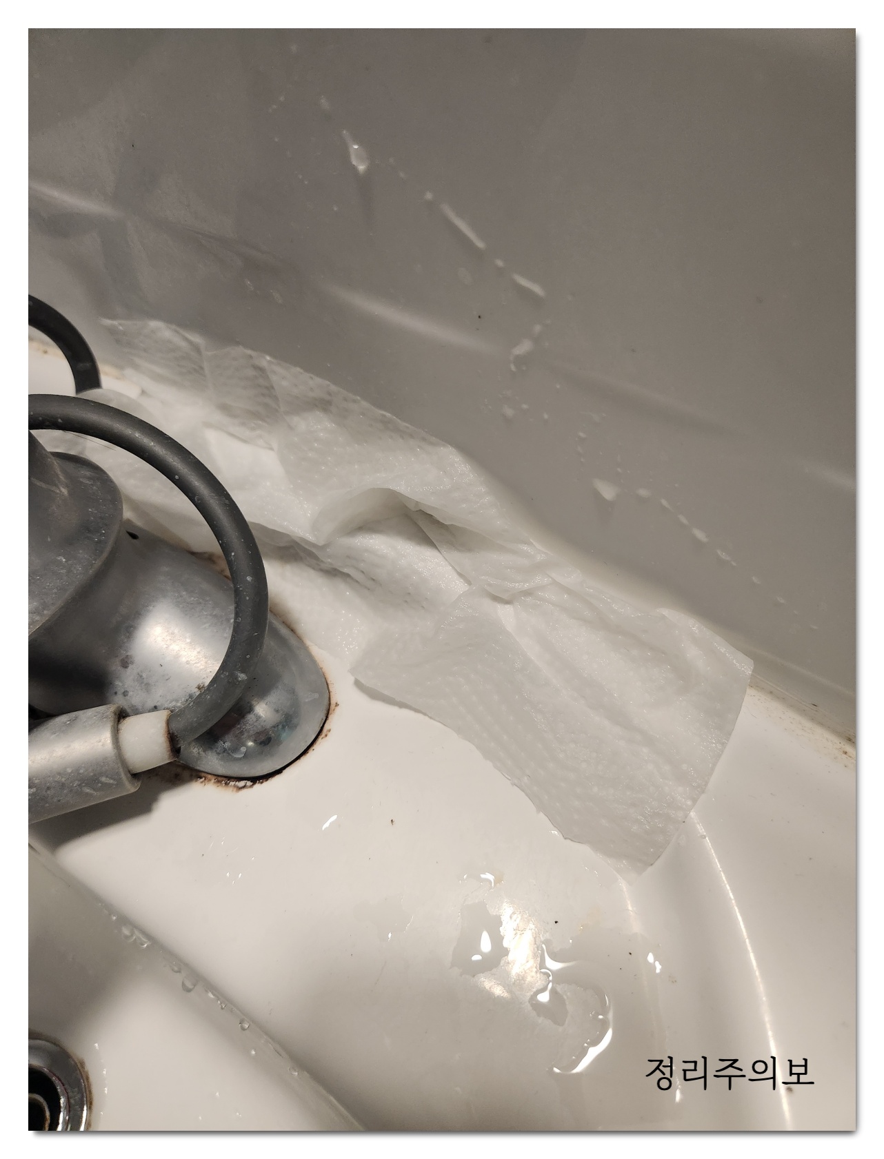 줄 눈 곰팡이 제거를 위해 나온 제품들도 많고, 주인장도 젤 형식의 제품을 사용하였으나 키친타올에 락스 뿌린게 최고다. 젤 형식의 제품은 일일히 발라주는 것도 일이고, 테이프 형태의 제품은 추가 비용이 들어간다. 하지만 락스에 적신 키친타올을 벽면이나 바닥에 붙여두는 것만으로도 곰팡이 쉽게 제거되기 때문에 가급적 이 방법을 추천한다.